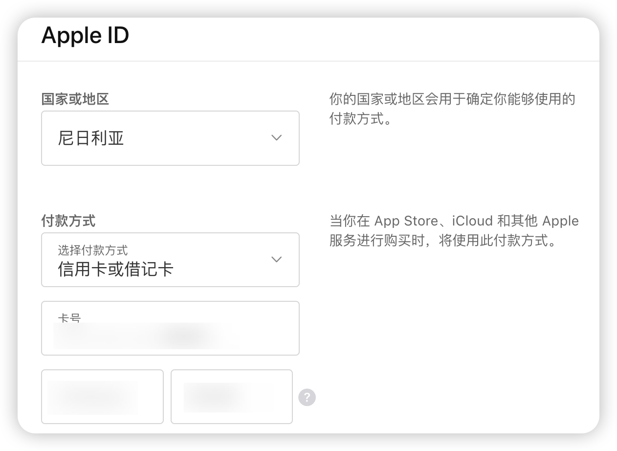 点击付款方式,再点击添加付款方式 ,选择信用卡或借记卡(添加付款方式全程需要代理,建议使用尼日利亚的🇳🇬)