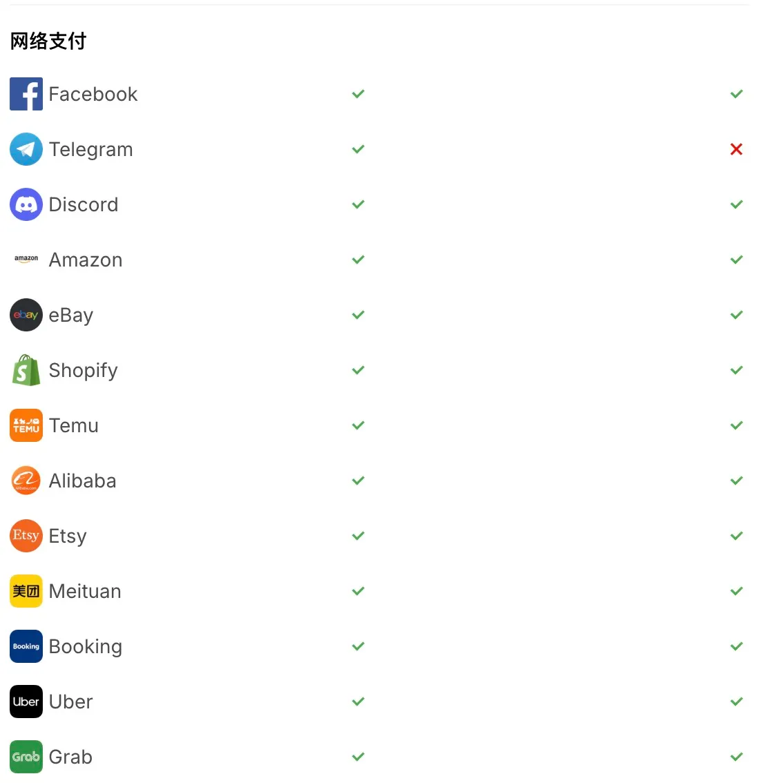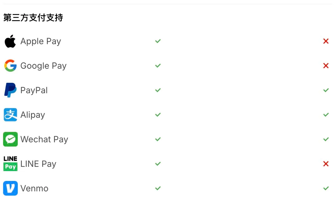 支持的支付方式