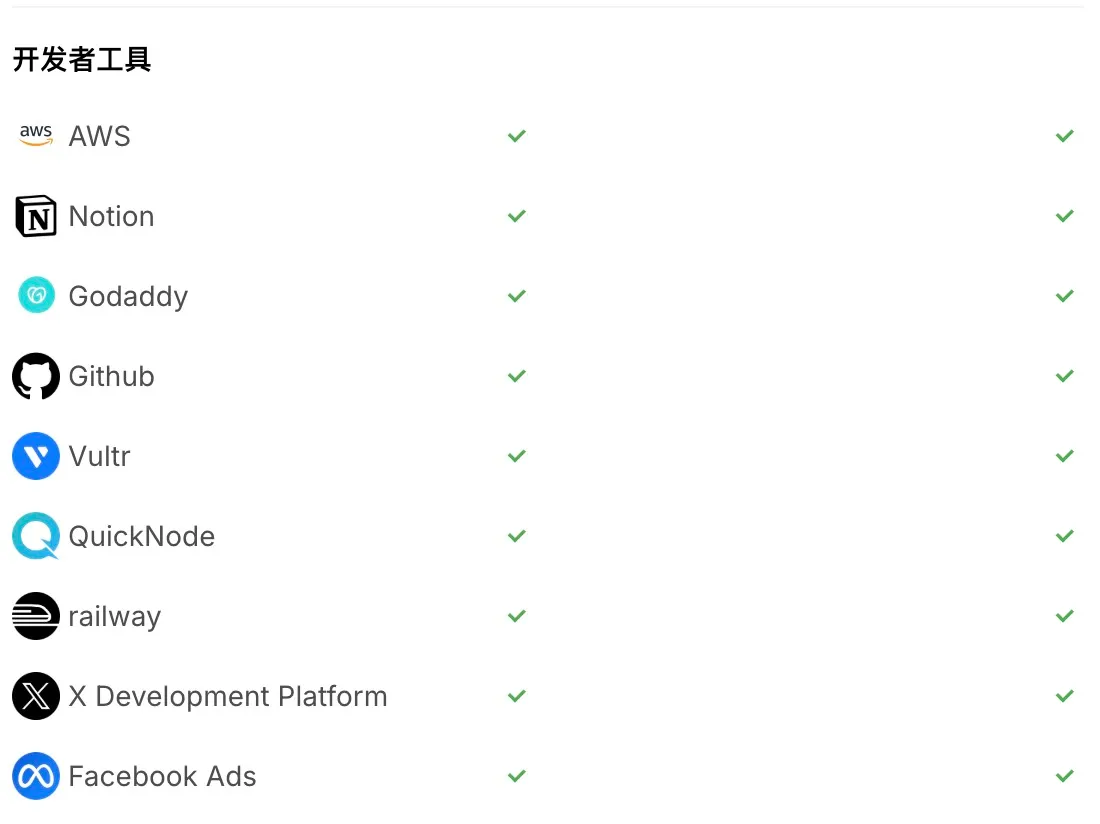 注:不同卡片类型支持的服务可能有所差异,请参考下方对比图
