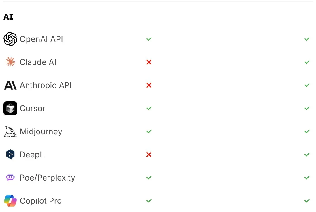 Infini无限卡是领先的全球虚拟支付解决方案(即将推出实体卡),以其极简开通流程和加密货币兼容性著称。特别适合需要无缝接入国际AI服务和数字平台的专业用户。