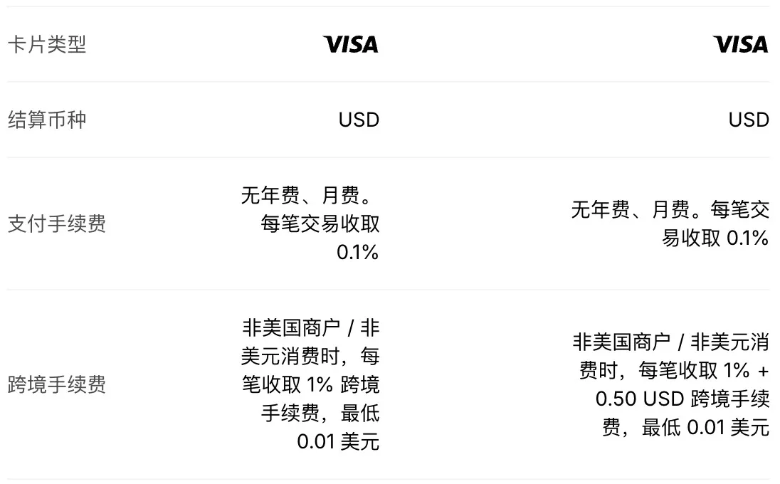 | 卡片类型 | 年费/月费 | 交易手续费 | 跨境费用 |