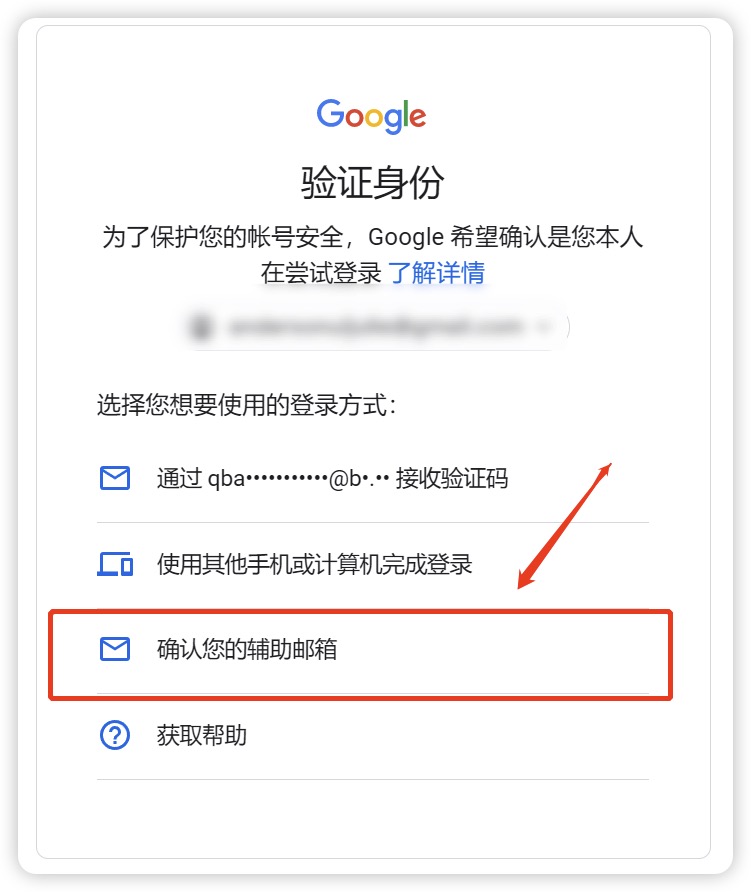 请选择 确认辅助邮箱,跳转之后输入辅助邮箱即可登录;(见下图)