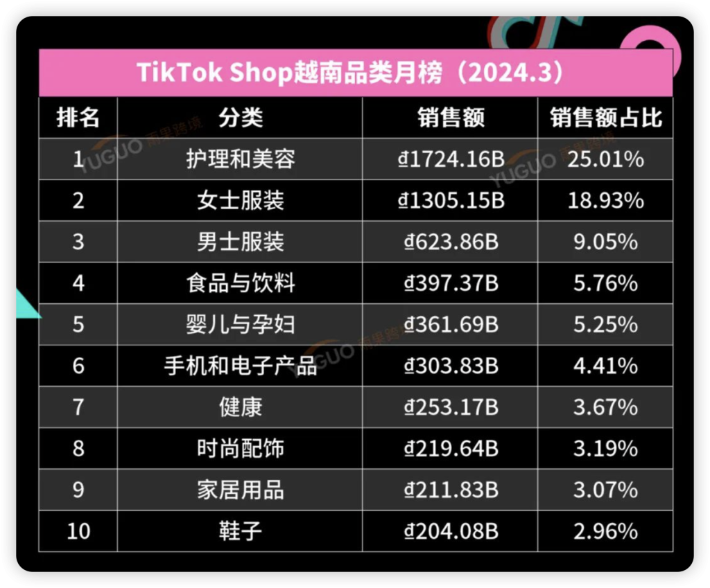 接下来进入 2024 年 3 月 TikTok Shop 东南亚五国品类、店铺数据榜单,帮助卖家了解 TikTok Shop 东南亚最新市场现状,掌握选品趋势。